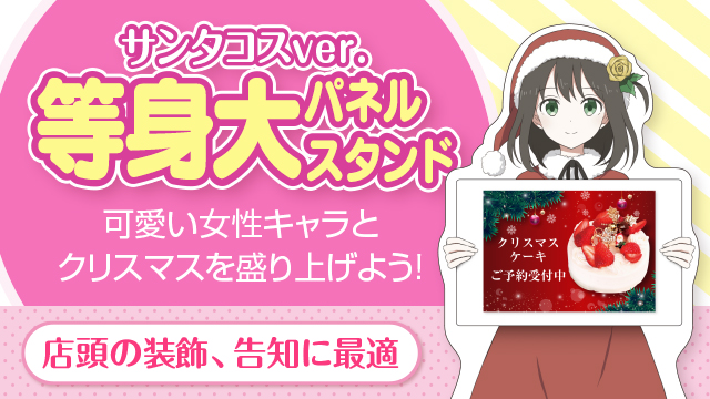 可愛い女性キャラがクリスマスを盛り上げる!「美少女キャラの等身大パネルスタンド」サンタコスVer.|店頭の装飾・PRに効果的